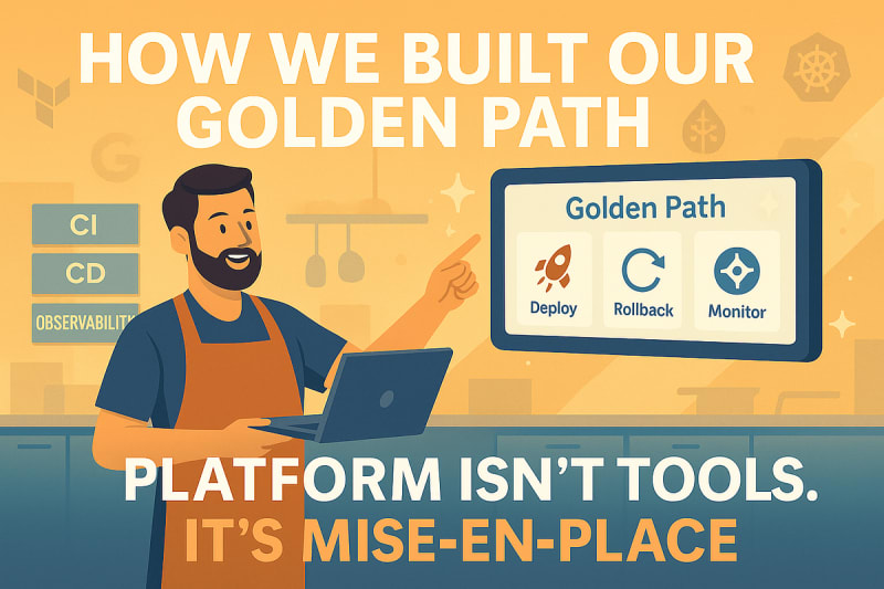 A practical guide to building the first golden path in platform engineering, focusing on creating a streamlined backend service deployment process. The story emphasizes starting with developer journeys rather than tools, treating the platform as a product with feedback loops, and scaling through trust rather than mandates. Key