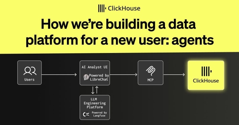 ClickHouse outlines its strategy for serving AI agents as a new class of database users. The post covers the 'Agentic Data Stack' reference architecture combining LibreChat, ClickHouse with MCP, and Langfuse for observability. Key releases include open-source and remote MCP servers, chDB 4 with a Pandas-like API, ClickHouse