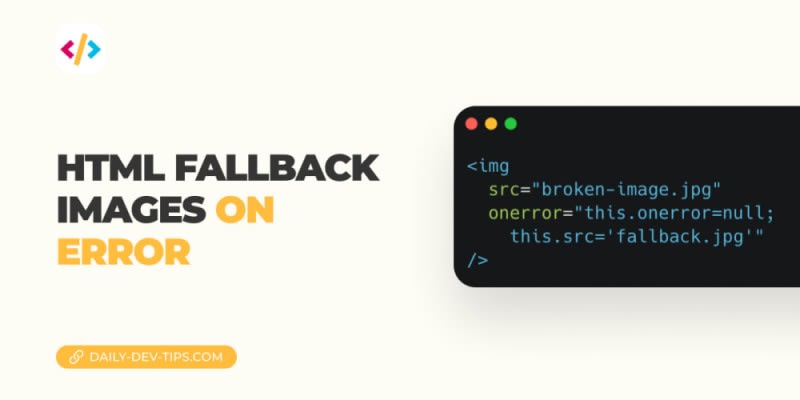 The first image loads, and the second one is broken. We can use the onerror attribute on the image to set a fallback. You ideally want to have the fallback image locally in the file system.