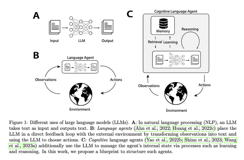 Cognitive LLM Agents leverage large language models (LLMs) for complex and probabilistic symbol transformations. These agents emulate human cognitive functions through a modular architecture, integrating elements like decision-making, memory, and learning. The CoALA framework demonstrates how to structure cognitive language agents utilizing LLMs as a core component, offering insights into modular agent development and structured reasoning techniques.