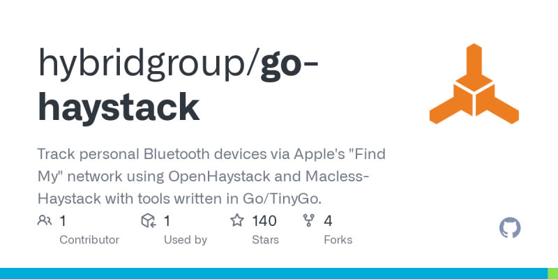 Go Haystack enables tracking of personal Bluetooth devices through Apple's 'Find My' network using OpenHaystack, Macless-Haystack, and tools written in Go/TinyGo. It supports various hardware including Adafruit Bluefruit, BBC Microbit, and boards with ESP32 or CYW43439 co-processors. Setup involves running beacon code on