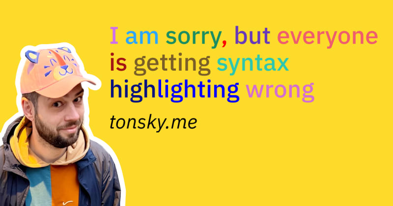 I am sorry, but everyone is getting syntax highlighting wrongChristmas Lights DiarrheaEnough colors to rememberWhat should you highlight?Comments are importantTwo types of commentsLight or dark?Bold and italicsMyth of number-based perfectionLet’s design a color theme togetherShameless plug time27 Comments