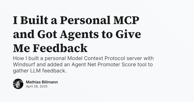 Explore the process of building a personal Model Context Protocol (MCP) server with Windsurf and integrating tools for feedback collection, including Agent Net Promoter Score (ANPS). The author shares insights on encouraging agents to autonomously use the MCP and refine functionalities based on received feedback, demonstrating