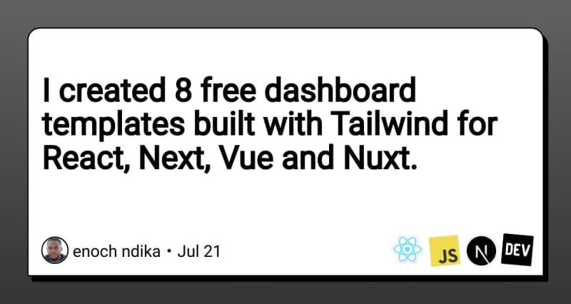 Salvia-kit is an open source dashboard tool for React, Next.js, Vue.js and Nuxt. It is fully customizable and without external dependencies. You can export it and integrate it in your project. There are 33 repositories and each dashboard has 4 templates.