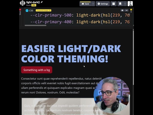 The CSS light-dark() function simplifies color theming by letting you declare both light and dark mode values for each color in a single place, eliminating the need for duplicate color definitions under prefers-color-scheme media queries. Instead of maintaining two separate sets of CSS variables, you define each color once
