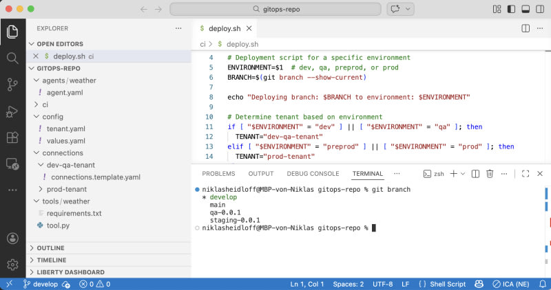 A practical guide to implementing CI/CD and GitOps principles for IBM watsonx Orchestrate agents. The approach uses Git branches to represent environment states (dev, QA, staging, production) across two tenants, with YAML-defined assets deployed via the Orchestrate CLI. Key topics include the two-tenant architecture,