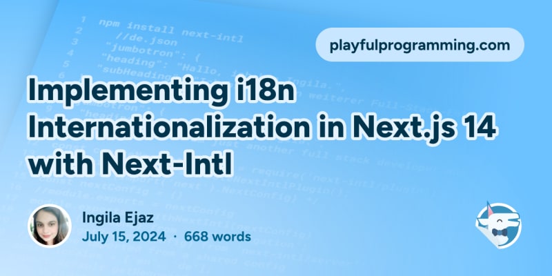 A walkthrough of implementing internationalization (i18n) in a Next.js 14 portfolio using the next-intl library. Covers project structure, JSON translation dictionaries for English and German, configuration via next.config.js and i18n.ts, middleware setup for locale routing, layout integration with NextIntlClientProvider, and using useTranslations in components.