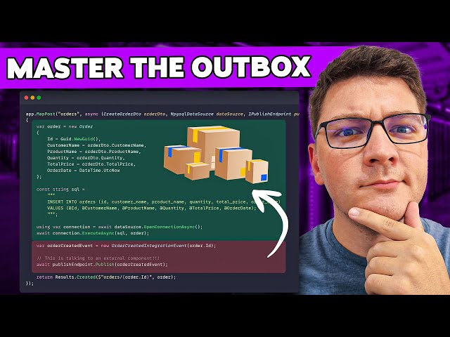 The post discusses the implementation of the transactional outbox pattern, demonstrating how to reliably update the database and publish messages to a queue using an orders API and a shipping API. It explains potential issues with traditional methods where a transaction could leave the system in an inconsistent state. The outbox pattern is proposed as a solution, which involves persisting messages in the database as part of the same transaction and processing them later. The post thoroughly explains how to set up and implement this pattern, highlighting key considerations and potential improvements for reliability.