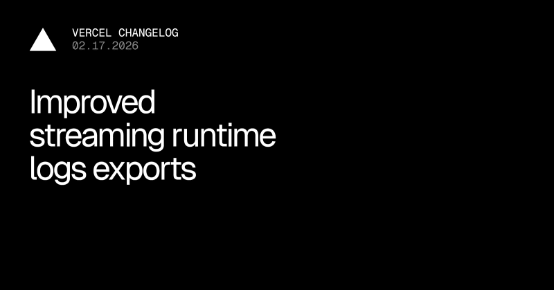 Vercel's runtime logs export feature now streams directly to browsers for immediate downloads without buffering delays. Users can export exactly what's visible on screen or all requests matching their search, with limits of 10,000 requests (or 100,000 for Observability Plus subscribers). Exported data is now indexed by request