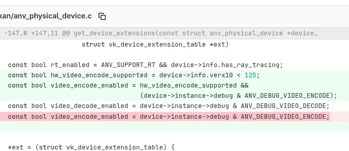 Intel's open-source ANV Vulkan driver is disabling Vulkan Video encode support on Gen12.5 and newer hardware (Arc Alchemist, Battlemage, Meteor Lake+) due to insufficient testing. The decision follows a bug report about H.264 encoding failures with FFmpeg on newer hardware that developers couldn't reproduce or test. The Vulkan