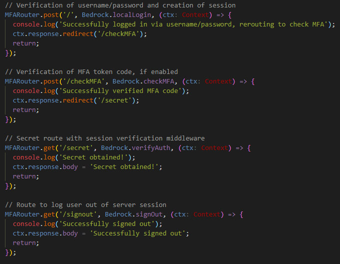 Bedrock is a strategy-based authentication library built in TypeScript for developers to import easy-to-use middleware. Designed to be the bedrock of your user sign-in experience, it boasts a suite of OAuth providers and a local authentication strategy that provides MFA through SMS text message, email, and TOTP apps.