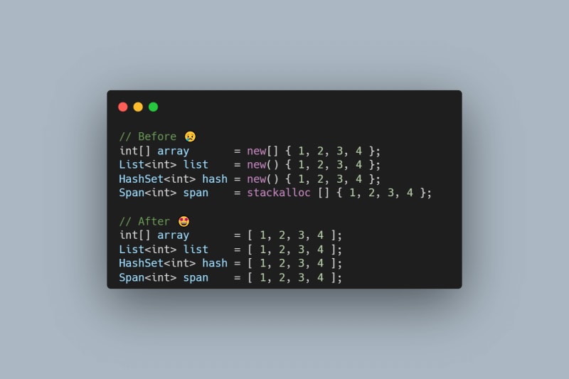 Classic collection initializersUnifying syntax with collection expressionsInferring interface types with collection expressionsEfficient automatic stackalloc for ReadOnlySpanCollection expressions make refactoring simplerEmpty collectionsBuilding collections from others with the spread elementSummarySort: