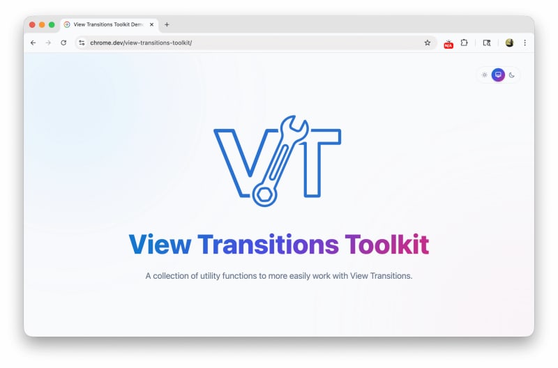 view-transitions-toolkit is a new npm package that bundles reusable utility functions for working with the View Transitions API. It includes helpers for feature detection, shimming document.activeViewTransition, extracting and optimizing animations, controlling transition playback (pause/resume/scrub), and automatically