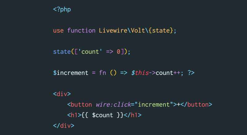 Volt is an elegantly crafted functional API for Livewire. The functional API is compiled to Livewire class components and linked with the template present in the same file. Volt allows you to easily convert a small portion of a page into a Volt component without extracting it into a separate file.