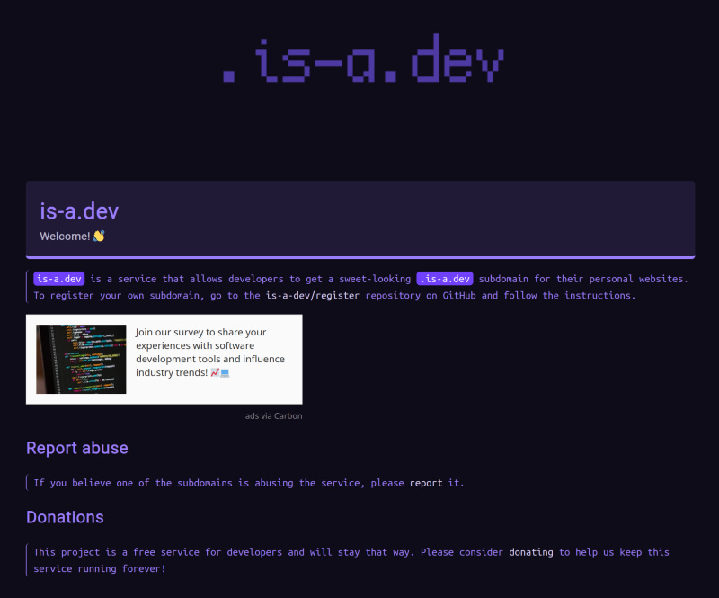 is-a.dev: A Free .dev Subdomain for Your Projects