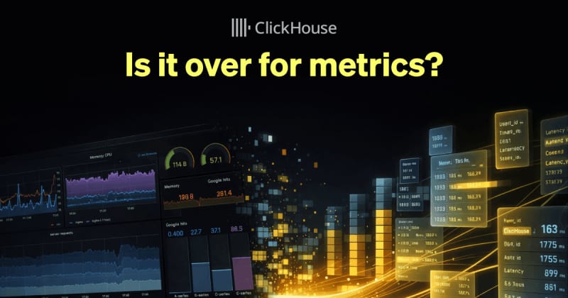 Traditional metrics are shifting from the center of observability stacks to an optimization layer. While metrics remain useful for known failure modes and system-level signals like CPU and memory, they struggle with high-cardinality debugging and require pre-defining what to measure. Modern columnar databases like ClickHouse