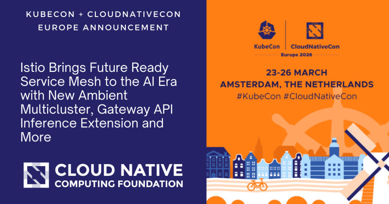Istio announced three major updates at KubeCon + CloudNativeCon Europe 2026: ambient multicluster support in beta (enabling cross-cluster traffic routing without sidecars), Gateway API Inference Extension in beta (integrating ML inference into mesh traffic flows), and experimental support for agentgateway as part of the Istio