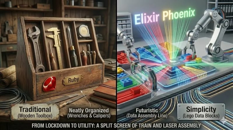 A beginner-friendly guide for Ruby developers learning Elixir, covering the key mental model shifts needed to move from object-oriented to functional programming. Covers four core differences: Classes vs Modules (data and functions are separate in Elixir), method chaining vs the pipe operator (|>), Ruby Hashes vs Elixir Maps