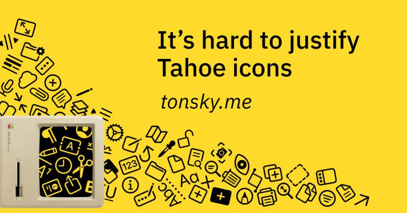 It’s hard to justify Tahoe iconsIcons should differentiateConsistency between appsConsistency inside the same appIcon reuseToo much nuanceDetalizationPixel gridConfusing metaphorsSymmetrical actionsText in iconsText transformationsSystem elements in iconsIcons break scanningSpecial mentionIs HIG still relevant?ConclusionNotes13 Comments
