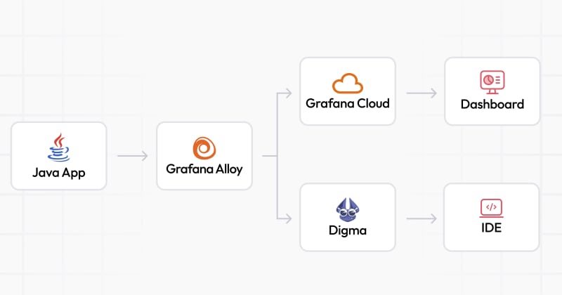 Connecting a Java app to Grafana Cloud and Digma.aiHow to connect your Java app to Grafana CloudHow to use observability data when developing codeCode with feedbackSort: