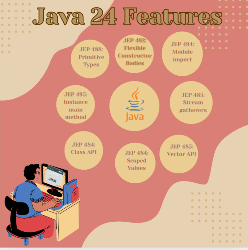 Java 24 introduces several new Java Enhancement Proposals (JEPs) that enhance language features, core libraries, performance, and security. Notable improvements include flexible constructor bodies, module import declarations, a more efficient stream API, scoped values, and quantum-resistant cryptography. Despite being a