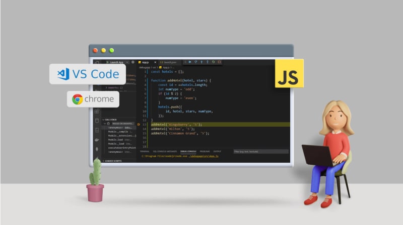 JavaScript Debugging with VS Code and Chrome Debugging is a vital part of identifying why your application is misbehaving. This article will discuss how we can debug JavaScript using the simple and efficient tools in Visual Studio Code and Google Chrome. A list of breakpoints is always available in the right panel of Chrome