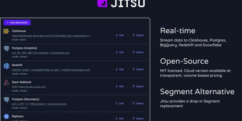 Jitsu is an open-source Segment alternative with event collection and API connectors. It can stream and collect the data to any data warehouse of your choice and can be deployed in 2 minutes. Embed Collect can be used to collect and share data with other apps.