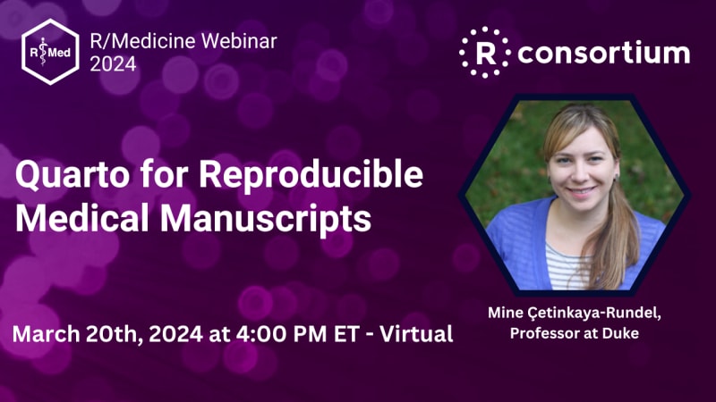 Join the R Consortium for a webinar featuring Mine Cetinkaya-Rundel discussing the Quarto tool for reproducible medical manuscripts. Learn about the features of Quarto, witness a live demo, and gain insights from an expert in the field.