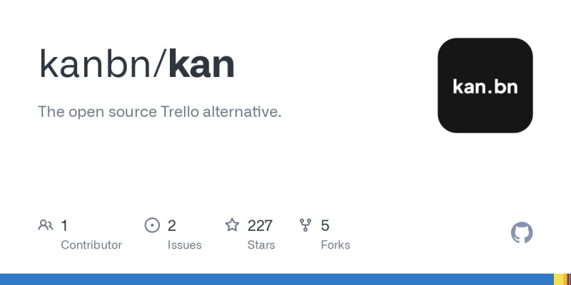 Kan is an open-source project management tool that serves as a Trello alternative, featuring board visibility controls, workspace collaboration, Trello import functionality, labels and filters, comments, and activity logging. Built with Next.js, tRPC, Better Auth, Tailwind CSS, Drizzle ORM, and React Email, it offers local