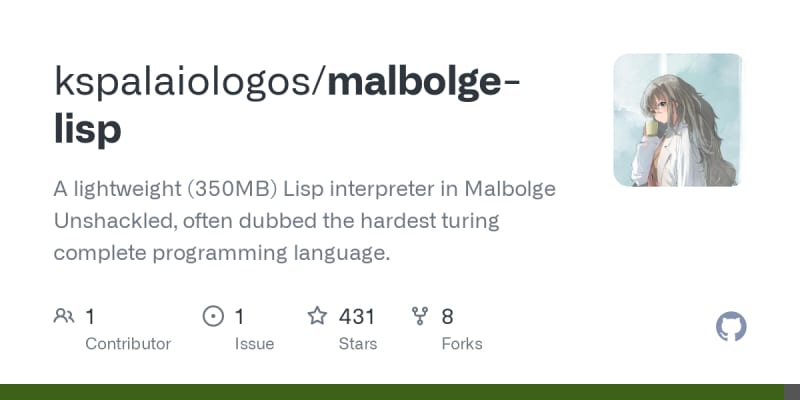 MalbolgeLisp is a LISP interpreter written in Malbolge, the most advanced and usable Malbolge program ever created. Malbolge is an esoteric programming language known for its difficulty. Instructions in Malbolge depend on their position, and Malbolge Unshackled, the variant used by MalbolgeLisp, adds additional challenges.