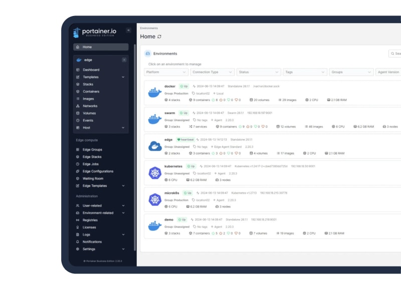 Portainer is a versatile container management software designed for fast, secure, and user-friendly deployment of Docker and Kubernetes environments. It supports multi-cluster and multi-device management, provides centralized access and policy management, and offers a unified user experience. Being self-hosted, Portainer keeps operations secure within your network.