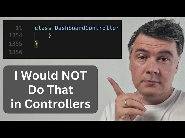 A code review examines Laravel controllers ranging from 400 to 1,355 lines, arguing they're too long. The author advocates for shorter controllers that delegate data processing to services, actions, or config files rather than containing private methods and hardcoded data. Examples show controllers with numerous private methods