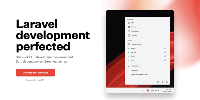Laravel Herd for Windows is a blazingly fast, native Laravel and PHP development environment that includes everything you need to start Laravel development.