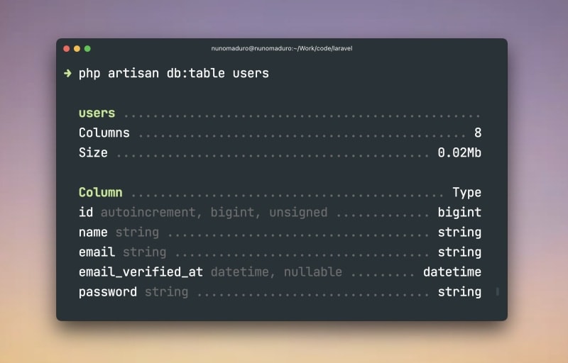 This week's Laravel v9.24 release introduces three new database commands. Artisan "db:show" command gives you an overview of your database as a whole. The new db:monitor command allows you to quickly see the number of open connections to your database.