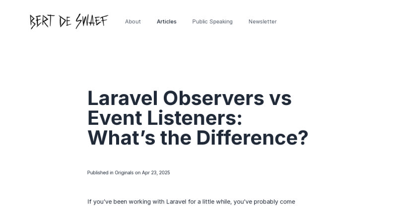 The post discusses the differences between Laravel observers and event listeners, helping developers understand how each concept works and when to use them.