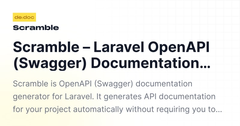 Scramble is a Laravel OpenAPI (Swagger) Documentation Generator that automatically generates API documentation without the need for manual PHPDoc annotations.