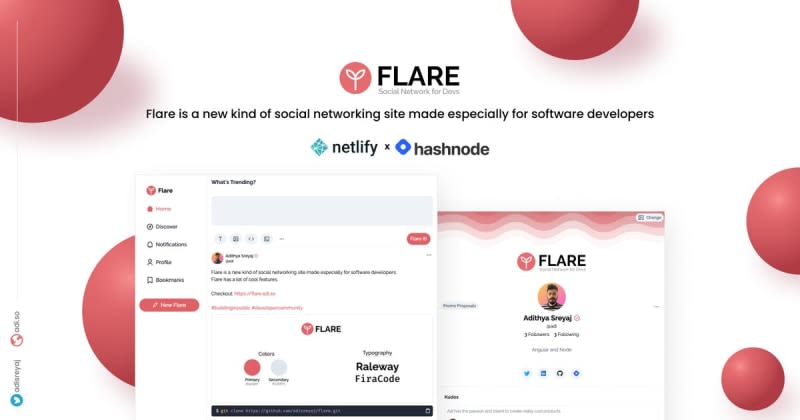 Flare is a new kind of social networking site made especially for software developers. Flare is my entry for the Netlify x Hashnode Hackathon. Flare uses a lot of cool open-source frameworks and tools. The client application for flare is built using Angular and is styled using Tailwind CSS.