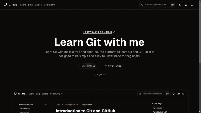 Learn Git with me is a free and open-source platform to learn Git and GitHub. It is designed to be simple and easy to understand for beginners.