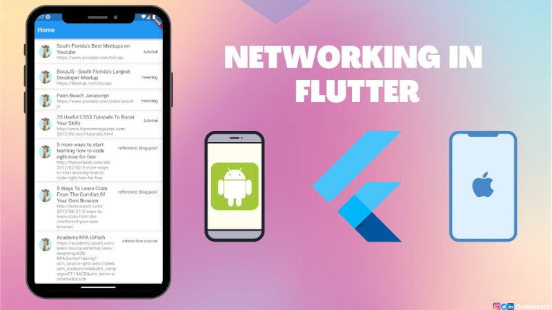 Learn Networking in Flutter by Building a Simple App. Learn how to build a super simple mobile app that fetches data from the internet and renders it on the app. In this tutorial, we'll be using the API exposed by https://sampleapis.com/. They expose an API endpoint that lists Coding Resources.