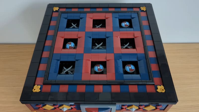 Joost van Velzen built a fully mechanical LEGO machine capable of playing Tic-Tac-Toe without any electronics. The machine uses 52 mechanical logic gates and 204 bits of mechanical memory to process game state and respond with moves. It always starts by taking the center square, and the human player's first move is limited to