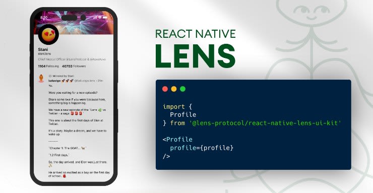 Lens UI Kit for React Native React Native Lens UI Kit is a React Native UI kit for Lens Protocol. Get started building with as little as 2 lines of code. Mix and match components to supercharge your mobile development workflow. Use these tools to help you develop with the project locally.