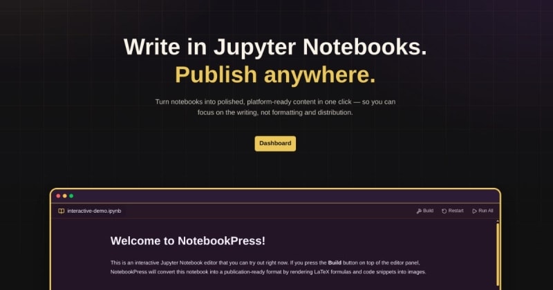 NotebookPress is a new tool that converts Jupyter Notebooks into Substack-ready posts in two clicks. It addresses four key pain points for technical writers: LaTeX rendering (with coloring and equation numbering), syntax-highlighted code snippets, Python-generated image outputs, and cross-platform compatibility. Code execution