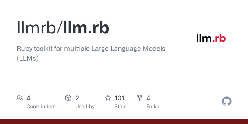 llm.rb is a zero-dependency Ruby toolkit for integrating multiple Large Language Models including OpenAI, Gemini, Anthropic, xAI, DeepSeek, Ollama, and LlamaCpp. It provides a unified API for chat completions, streaming, tool calling, structured outputs via JSON schemas, audio transcription/generation, image generation/editing,