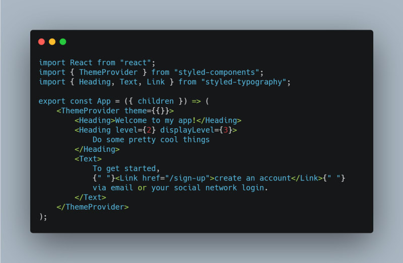 styled-typography is a small set of components, using styled-components, to better manage typographic styles. The API was born out of years of managing large single page applications and design systems. It's flexible to be used however you need and to be customized further, but simple enough to have a small API.