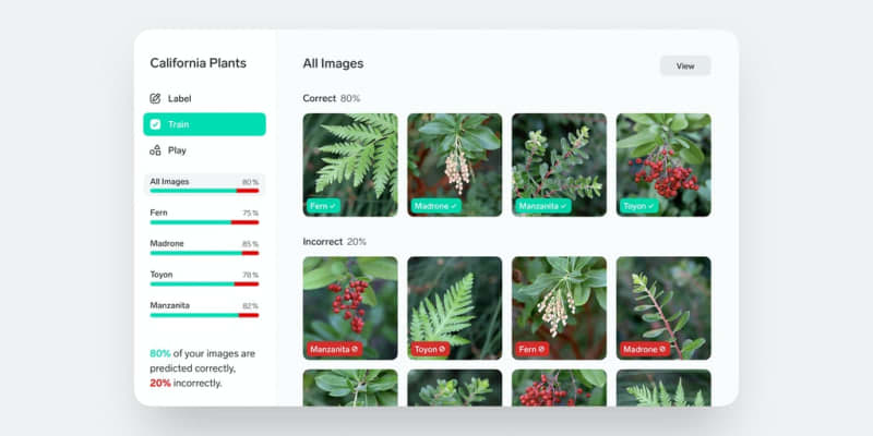 Lobe helps you train machine learning models with a free, easy to use app. Just show it examples of what you want it to learn, and it automatically trains a custom machine learning model that can be shipped in your app. No code or experience required. Embed Collect