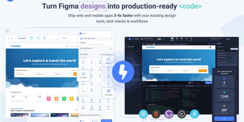 Locofy.ai helps builders launch 3-4x faster by converting designs to production ready code. Try Figma to React, React Native, HTML-CSS, Next.js, Gatsby in FREE BETA! Tag responsive designs, make components, get a live-prototype & export code or direct deploy.