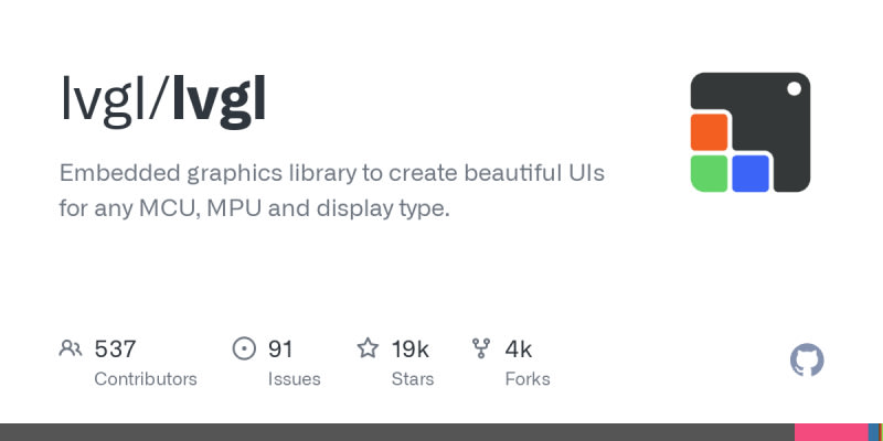 LVGL is a popular free and open-source embedded graphics library for creating user interfaces (UIs) on any microcontroller unit (MCU), microprocessor unit (MPU), or display type. It features 30+ built-in widgets, a powerful style system, web-inspired layout managers, and support for many languages. LVGL is highly portable,