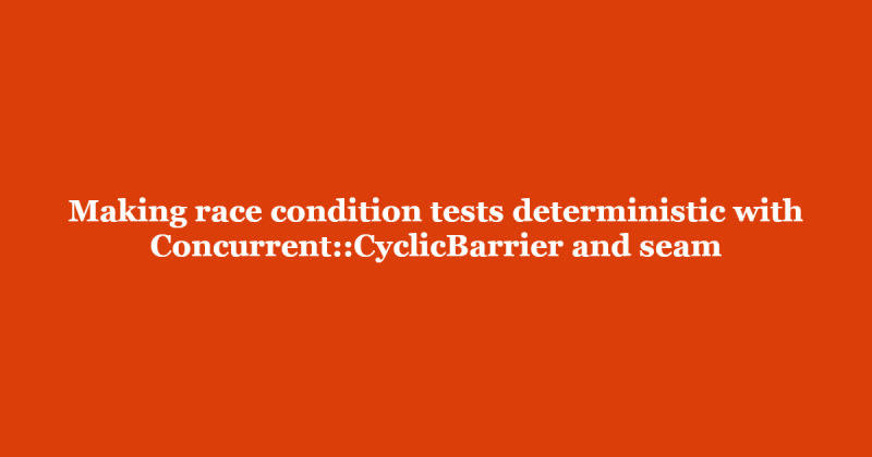 Demonstrates how to write deterministic tests for race conditions using Ruby's Concurrent::CyclicBarrier and the seam pattern from legacy code refactoring. Shows how to synchronize threads at specific points to reliably reproduce race conditions without modifying production code, using advisory locks as an example. The