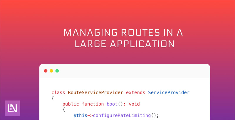 Learn different approaches to managing routes in a large Laravel application, including using the Route Service Provider and route groups. Discover how to improve visibility and organization of routes.