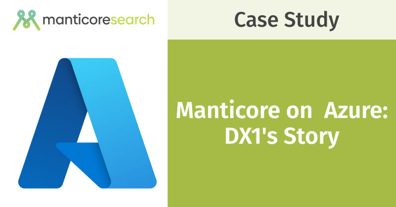 DX1 runs Manticore Search on Azure VMs to power typeahead search across 20M+ parts. They chose it for being open-source and fast, deployed on Ubuntu VMs within their existing Azure infrastructure. Best typeahead performance requires keeping indexes in memory, so scaling involves upgrading VM memory or adding cluster nodes.
